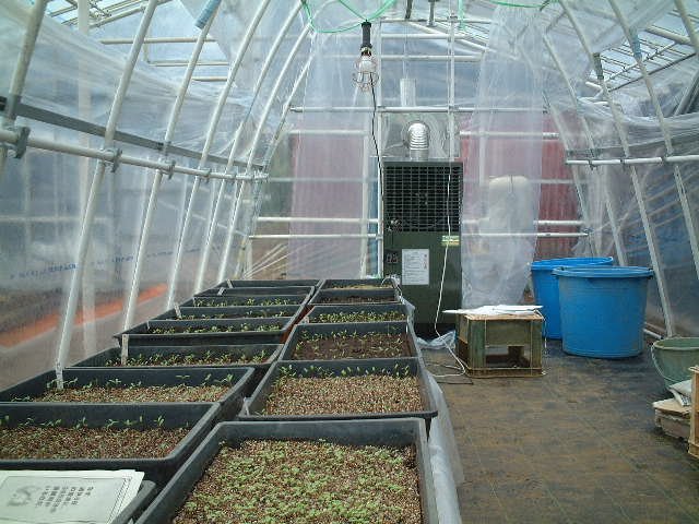 ここ八丈の農家兼園芸店Kさんから、花壇苗生産の指導を依頼された。私も三宅島では7〜8年島内消費用の花苗を作っていたのでアルバイトがてら引き受けた。Kさんのハウスの中に育苗用の小型フレームを作ってもらい、温風暖房機と温床マットを使ってジニア、マリーゴールド、ダリア、バーベナ、コリウス、ペンタス、ダイアンサスなどの種を9日に播いた。2日目から発芽が始り、一週間で芽も出揃った。花苗の育ち具合もUPしていこう。 |