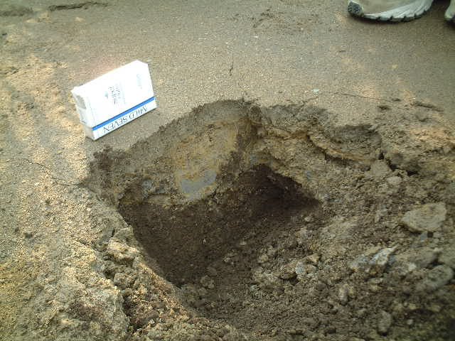 大長井(坪田地区)では泥流で埋まったハウスもある。泥流の厚さは1.5メートル位。 |
