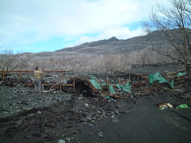雄山の村営牧場まで行ったが、かつての緑溢れる雄山はなく降灰と枯れ木だけの荒涼とした世界。笠地のダムも使用不能、阿古地区の農業用水をどうするか大きな課題だ。 |