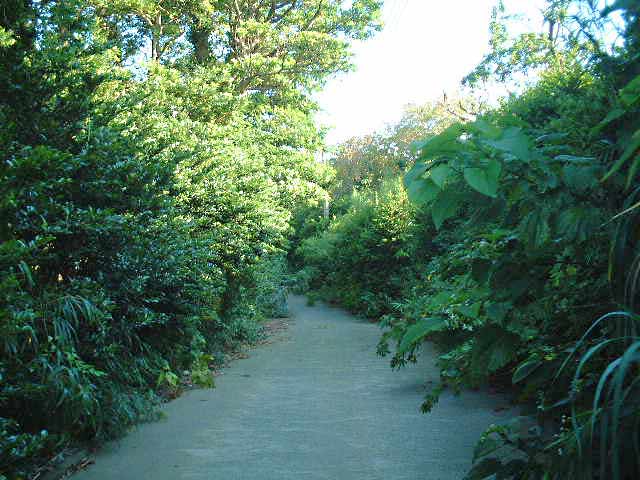 さらに村道を進んでいくと、以前より木々は生長し道にせり出してきていました。伊豆の畑は、風除けに、切枝出荷用にとサカキが多く植えられいますが、ふたまわり位大きくなっていました。 |