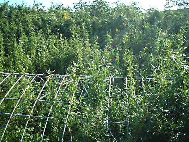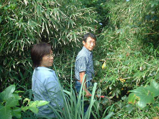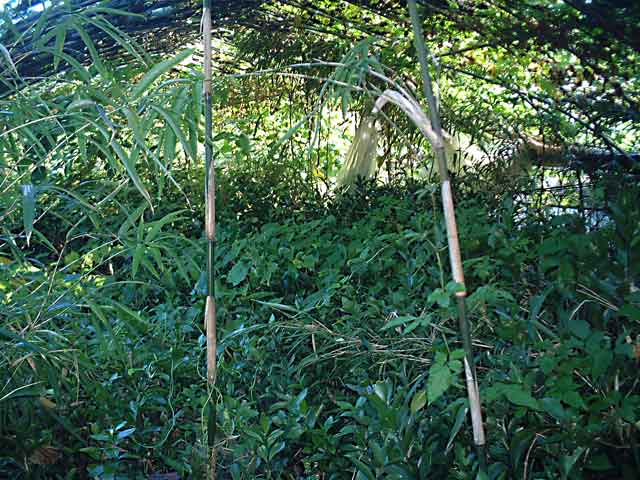 伊豆岬西原にあるハウスを覗いてみました。ユリの球根を持ち出すために昨年11月、一度来たことがあるのですが、前回はあまり竹も多くは無かった通路も今回は歩けないほどの竹やぶになっていました。 |